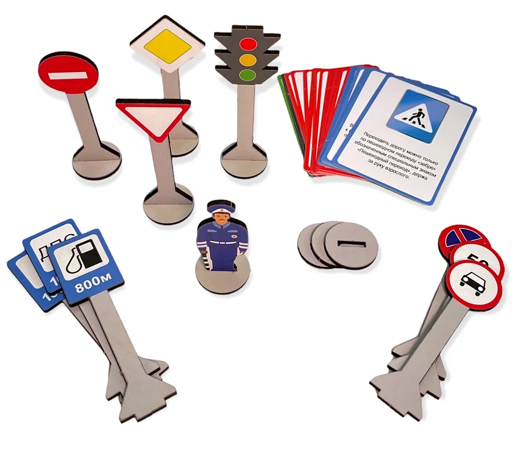 Миниатюрные дорожные знаки, уменьшенные копии светофоров и игрушечный инспектор – то, что нужно, чтобы наладить движение в воображаемом городе и отработать навыки поведения на настоящей улице. Играйте и запоминайте всей семьей!