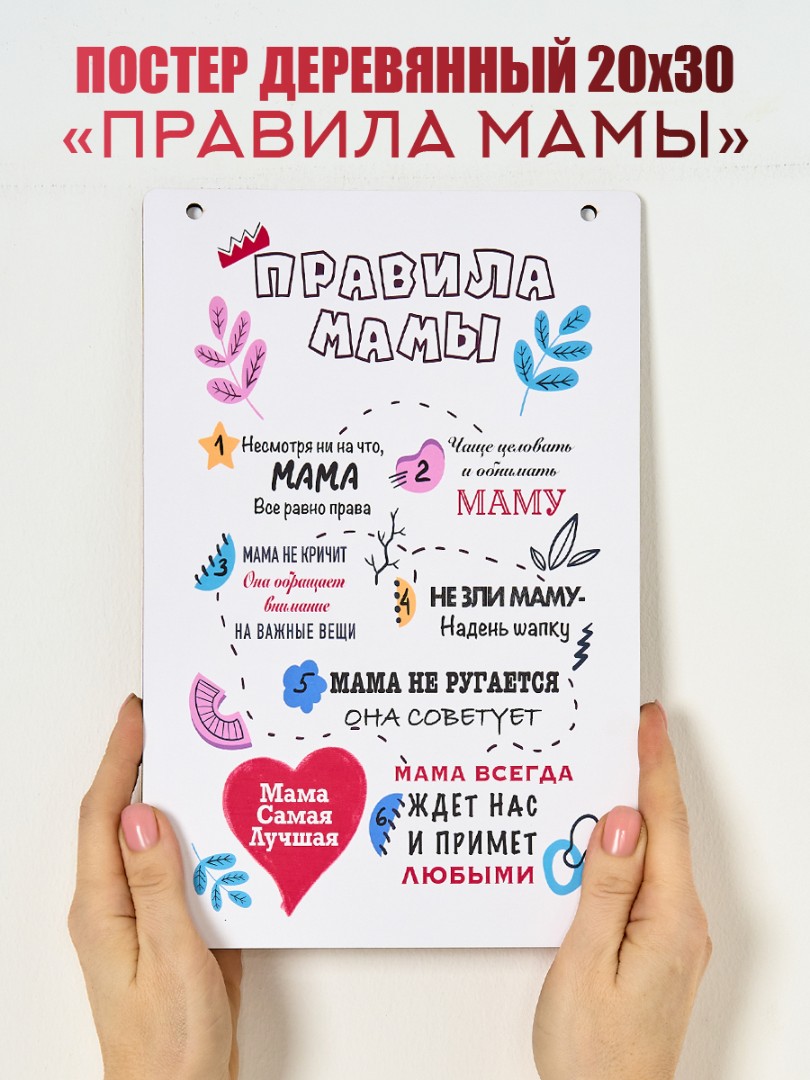 Постер для интерьера с правилами "Правила Мамы" (Мама самая лучшая), 20*30 см. +